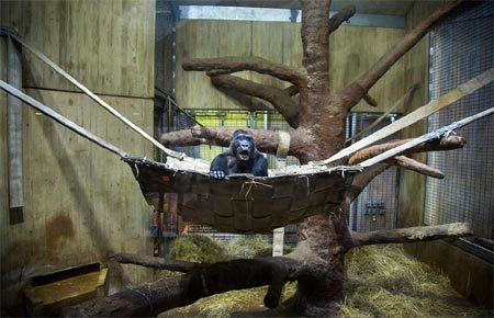 Động vật linh trưởng này nghe đâu đang trầm tư mặc tưởng nghĩ suy về điều gì đó. Một con vật hướng ánh mắt đau đáu ra bên ngoài chuồng.